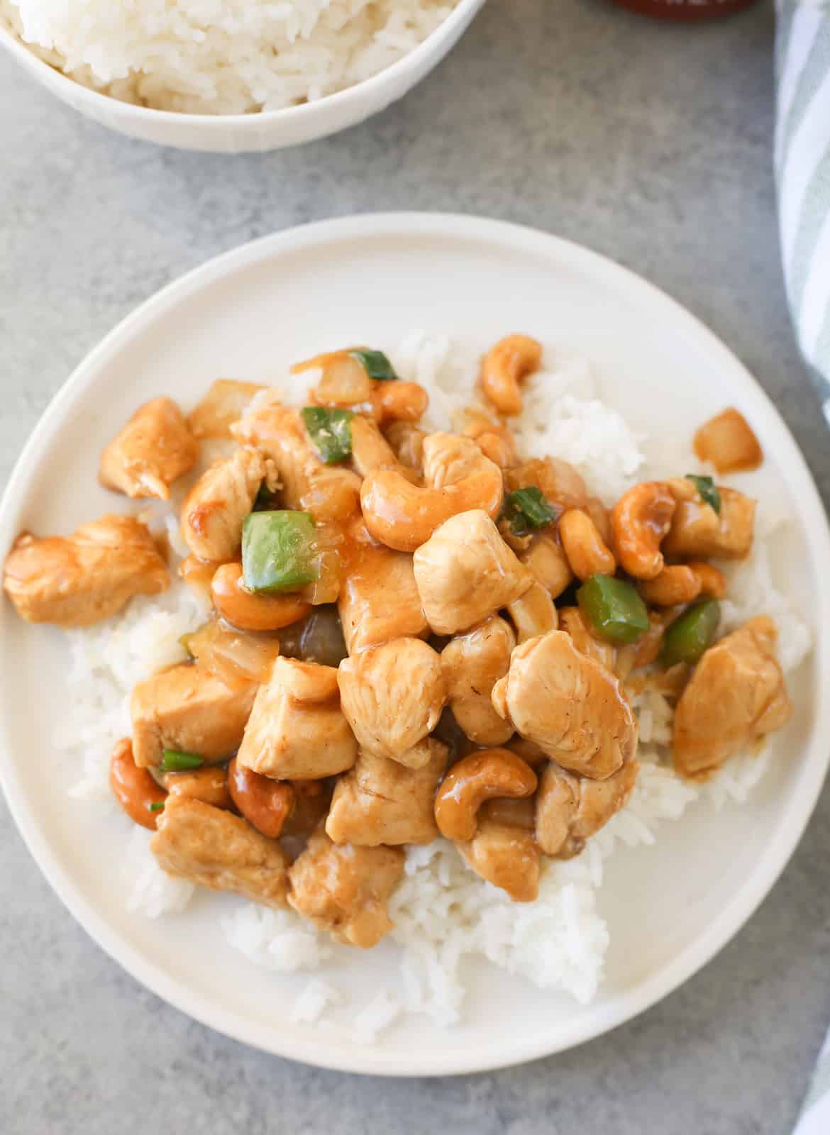 Cashew chicken has been my go to takeout order for as long as I can remember. I love all the different textures from the chicken, the crisp veggies, and the crunchy cashews. And the savory brown sauce that coats everything is just so delicious.