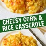 Cheesy Corn and Rice Casserole is a delicious, comforting side dish that the whole family will love. It's made with yellow rice, Mexicorn, and cheddar cheese.